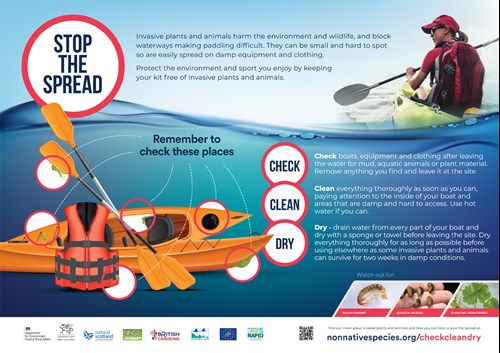 Biosecurity of the water will be ensured by following the principles of Check, Clean, Dry. These principles are part of a government-led initiative and are recognised as being key to stopping the spread of invasive non-native species. The principles apply to our own equipment, such as boats and water based items, and to any boats that might be used should kayakers be allowed to use the Lake for safety and rescue training purposes or recreational activities such as kayak polo. These principles are: