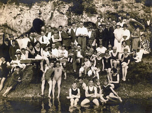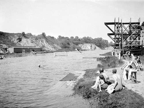 During the 19th century, a number of deep limestone quarries were worked in the Southmead area. Sometime after 1903, the site known as Shellard’s or Southmead Quarry ceased production and was allowed to flood. Soon after this, the flooded quarry started to be used informally for swimming and ice-skating. Sometime before 1910, a Mr Weekes charged people to swim at the lake, which became known as the Westbury bathing place or Henleaze bathing pool. It was very popular, with up to 200 people in the water on sunny days, and the whole length of the lake was used for swimming.