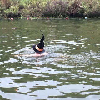 It was the last summer swim of 2016 today, despite it being the end of October! Swimmers were out in t-shirts and stripping off jumpers as I arrived. It definitely felt warm and muggy and I couldn’t wait to cool down and refresh in the water. As it was the day before Halloween, there were some strange costumes appearing at the lake today. A witches hat could be seen bobbing along up the lake, sported by one of the committee members (and I thought they were normally a serious lot). But this was nothing, I later met a witch in full costume in the showers, dripping wet from head to toe. She had obviously escaped from the ducking chair.